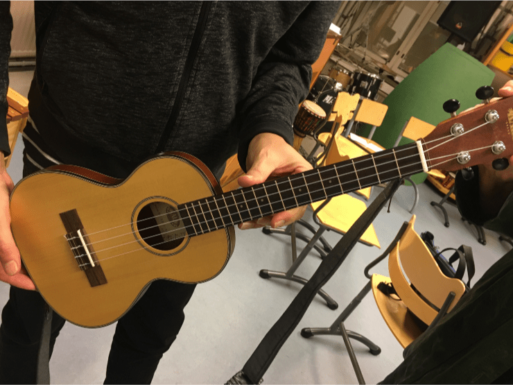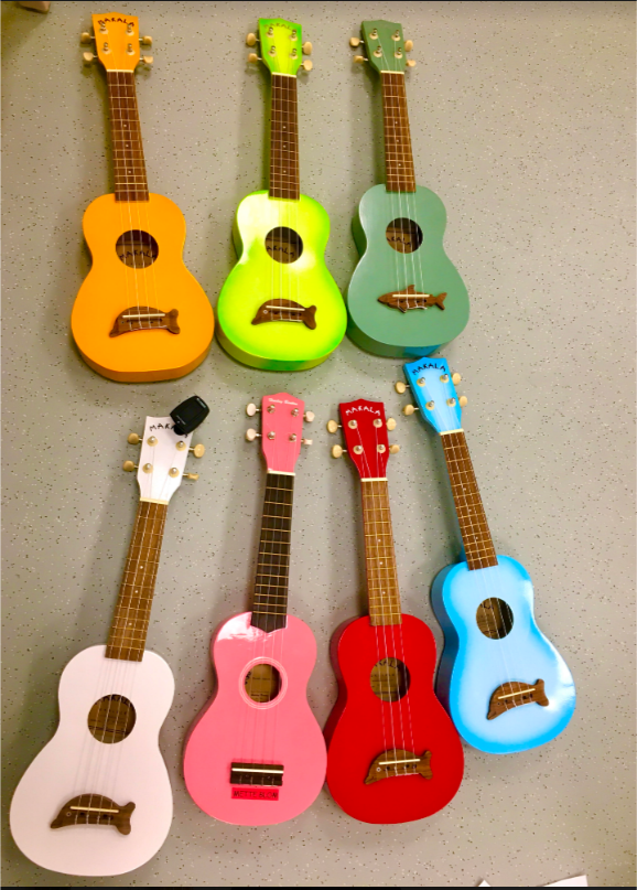 Innostuin Ukulelen soitosta reilu vuosi sitten. Löysin Salla Marttilan Muksulele-kurssin, jossa pääsin aloittamaan ja siellä pääsin myös kokeilemaan erilaisia ukuleleja. Päädyin hankkimaan itselleni konserttikokoisen soittimen, koska koin, että sormeni mahtuivat paremmin soittelemaan sen kaulalla. Salla Marttilan innoittamana ryhdyin heti myös vetämään päiväkodissani ukuleletuokioita. Lapset, jotka lähtivät mukaan, olivat 4-5 –vuotiaita. Lapset saivat kokeilla minun ukulelettani ja jos he olivat kiinnostuneita, niin, he saivat tulla mukaan ukuleletuokioihin. Lasten vanhemmat hankkivat lapsille ukulelet. Tein lapsille ryhmätilauksen sopraanokokoisista ukuleleista, viritysmittareista, kantolaukuista ja Muksulele-kirjoista. Aloitimme ukuleletuokiot keväällä 2019 ja ryhmämme ensiesiintyminen oli kevätjuhlassa.