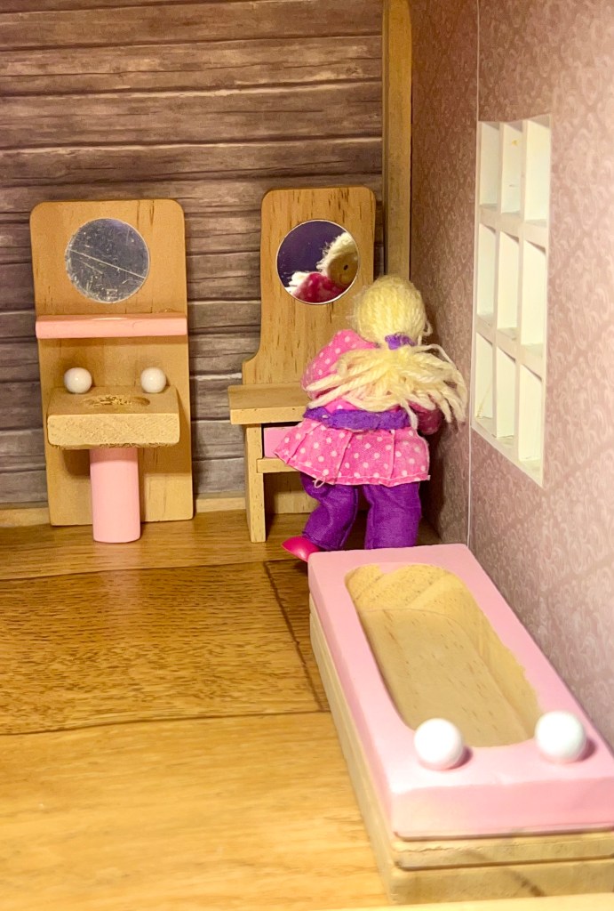 Sen jälkeen voit ottaa uuden tavaran tai huonekalun ja liikuttaa joko samaa nukkea eri paikkaan ja tilanteeseen tai voit liikuttaa jotain toista nukkea. Käy taas kirjoittamassa se vihkoosi.